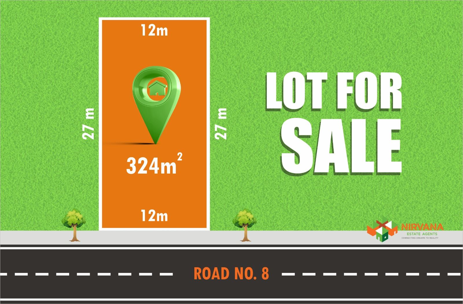 - Rectangular block of land measuring 12m frontage and 27m depth